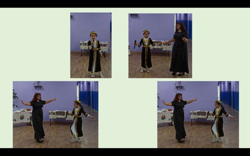 Девятиклассники провели экскурсию по Армении. Представители армянской национальности Мискарян К, ученица 2 класса и ее мама Мискарян Е. В. познакомили присутствующих с национальными песнями и танцами.