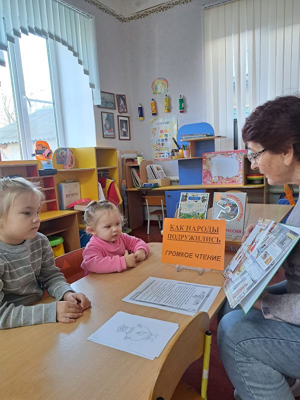 В преддверии празднования библиотекарь Андреева Т.В и воспитатель Майко М.А.провели тематические мероприятия, объединённые одной темой – "День народного единства".