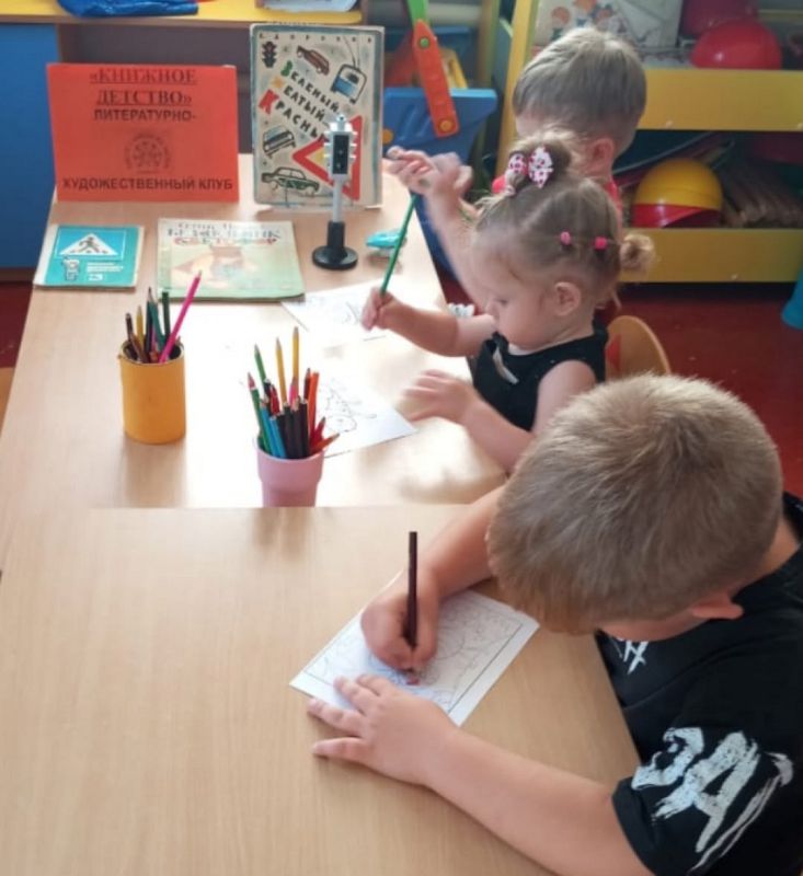 Дети вспомнили сигналы светофора и их значение, поучаствовали в игре: "Собери светофор",раскрасили раскраски, посмотрели книги из книжной выставки.