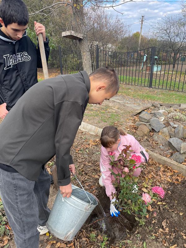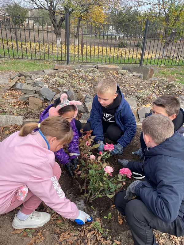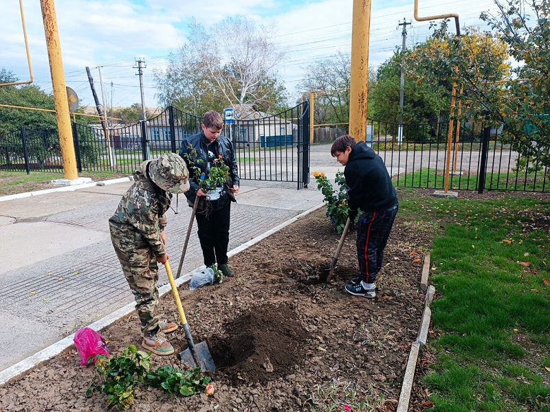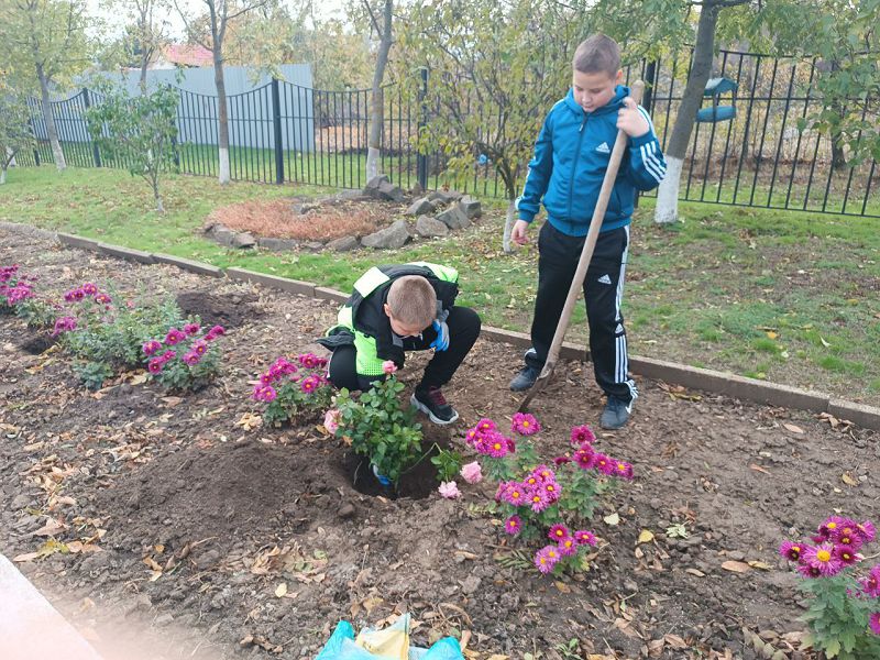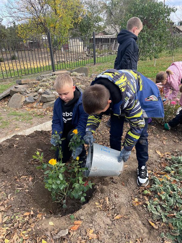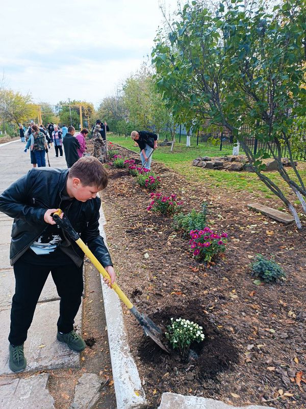 В ходе субботника была проведена акция «День древонасаждений»: ребята с учителями высадили деревья во дворе и кусты роз на школьных клумбах.